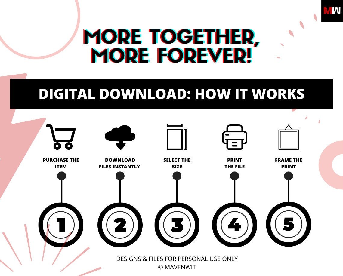 Save money and enjoy the flexibility of downloading this awesome original design by Mavenwit Designers in a multitude of sizes with different formats. Print on paper, canvas, wood, frames, etc – you name it! As long as it’s for personal use, the sky’s the limit! It’s just like printing a photo from your phone or camera.